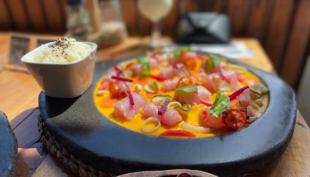 - Especialidades: el menú gira en torno al pescado fresco y los mariscos de la isla: ceviches con leche de coco, atún sellado, carpaccios y preparaciones al grill que realzan el sabor local.